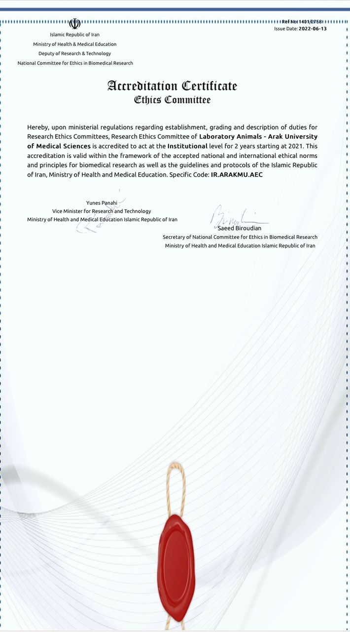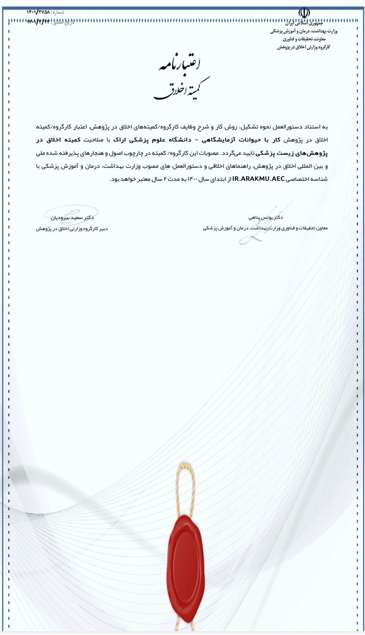 اخذ اعتبار نامه کمیته اخلاق در پژوهش کار با حیوانات آزمایشگاهی برای دانشگاه علوم پزشکی اراک ۰۱ تیر ۱۴۰۱ | ۰۷:۲۲ کد : ۲۷۲۴۶ اطلاعیه ارسال به دیگران نام شما ایمیل شما ایمیل دریافتکننده ارسال انصراف تعداد بازدید:۱۸۲۱۴