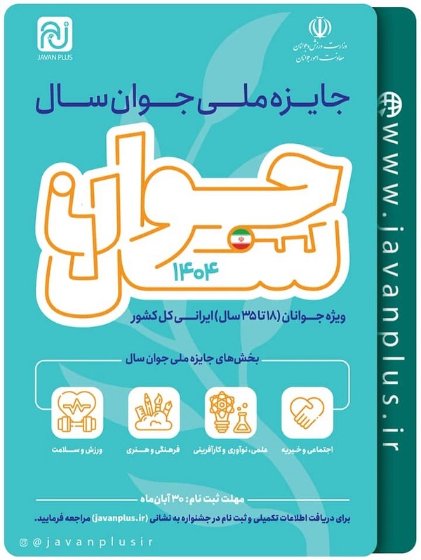 جایزه ملی جوان ۱۷ آبان ۱۴۰۴ | ۱۳:۲۴ کد : ۵۶۱۱۵ اطلاعیه ارسال به دیگران نام شما ایمیل شما ایمیل دریافتکننده ارسال انصراف تعداد بازدید:۱۸۱۲ جایزه ملی جوان سال ۱۴۰۴ فراخوان شرکت در جایزه ملی جوان سال ۱۴۰۴ منتشر شد.