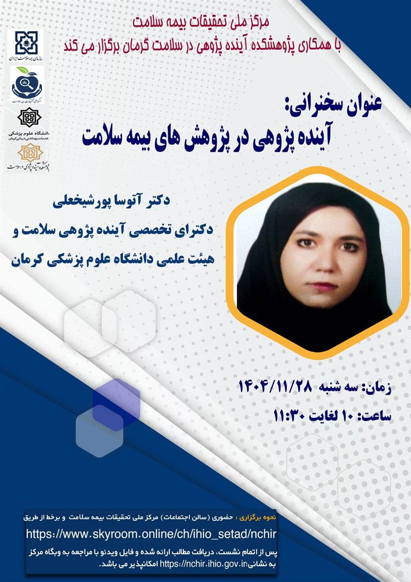 نشست علمی - تخصصی آینده پژوهی در پژوهش های بیمه سلامت ۲۶ بهمن ۱۴۰۴ | ۱۲:۱۹ کد : ۵۸۰۱۲ اطلاعیه ارسال به دیگران نام شما ایمیل شما ایمیل دریافتکننده ارسال انصراف تعداد بازدید:۹۶ نشست علمی - تخصصی آینده پژوهی در پژوهش های بیمه سلامت